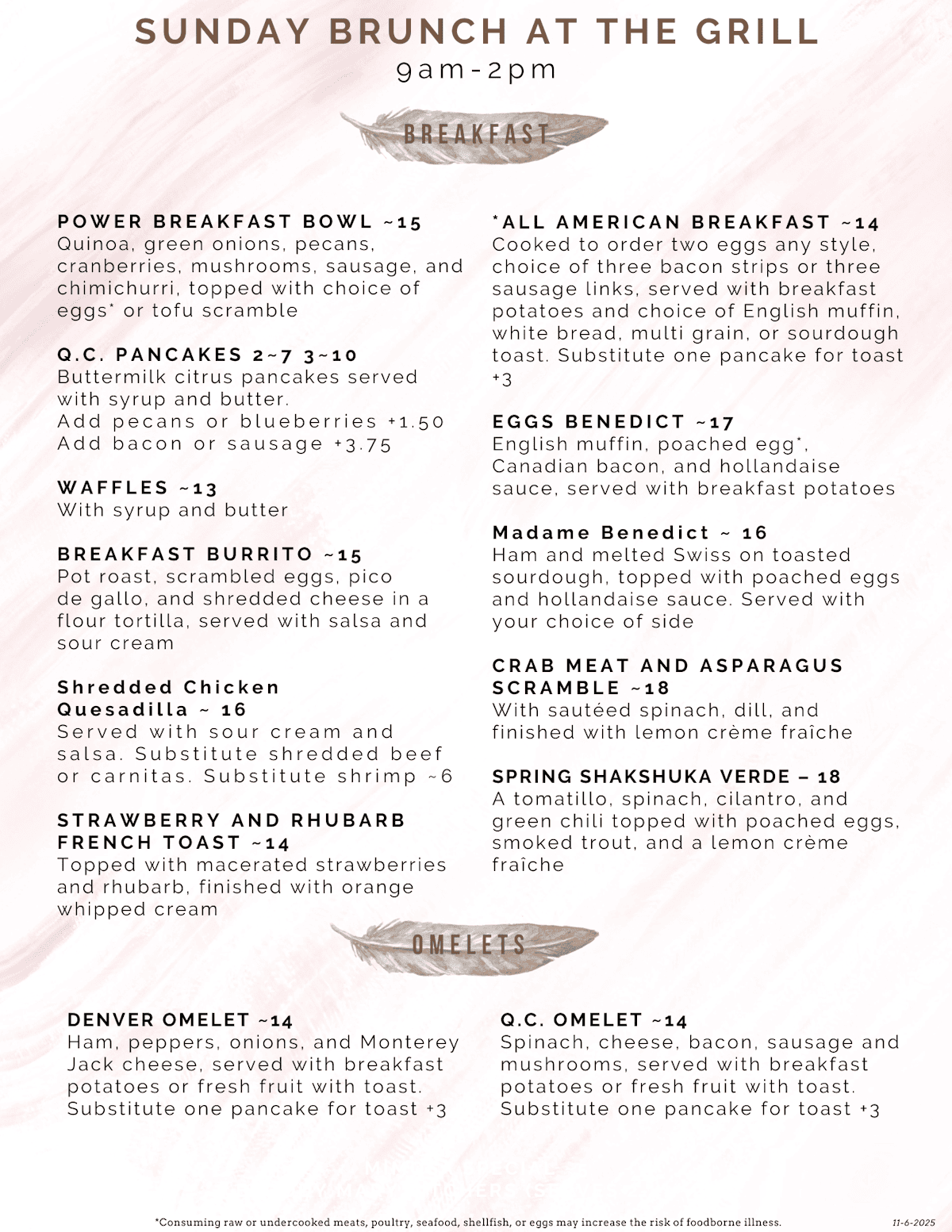 - Sunday Lounge service 2 PM to 5 PM, drinks only