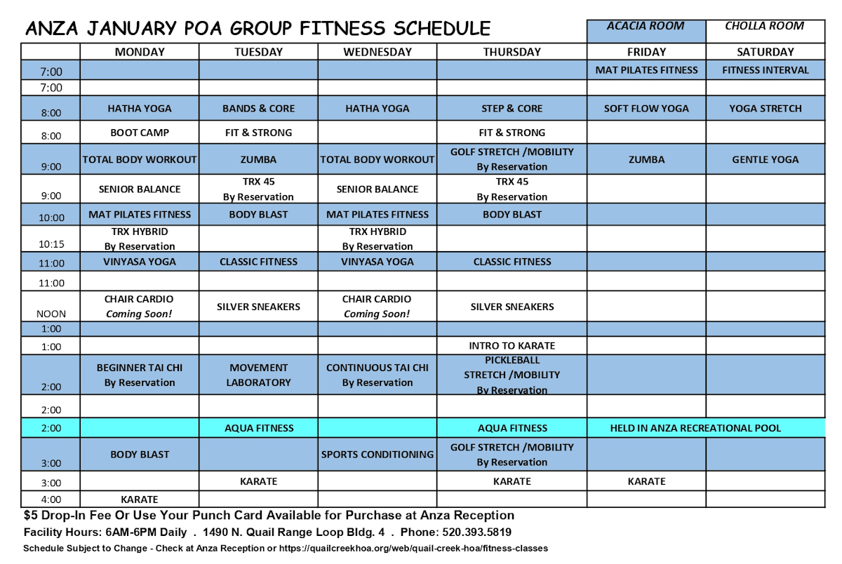 January 2026 Fitness Schedule