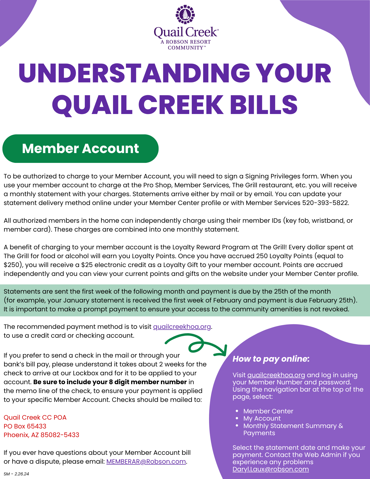 Print Member Account Billing Instructions