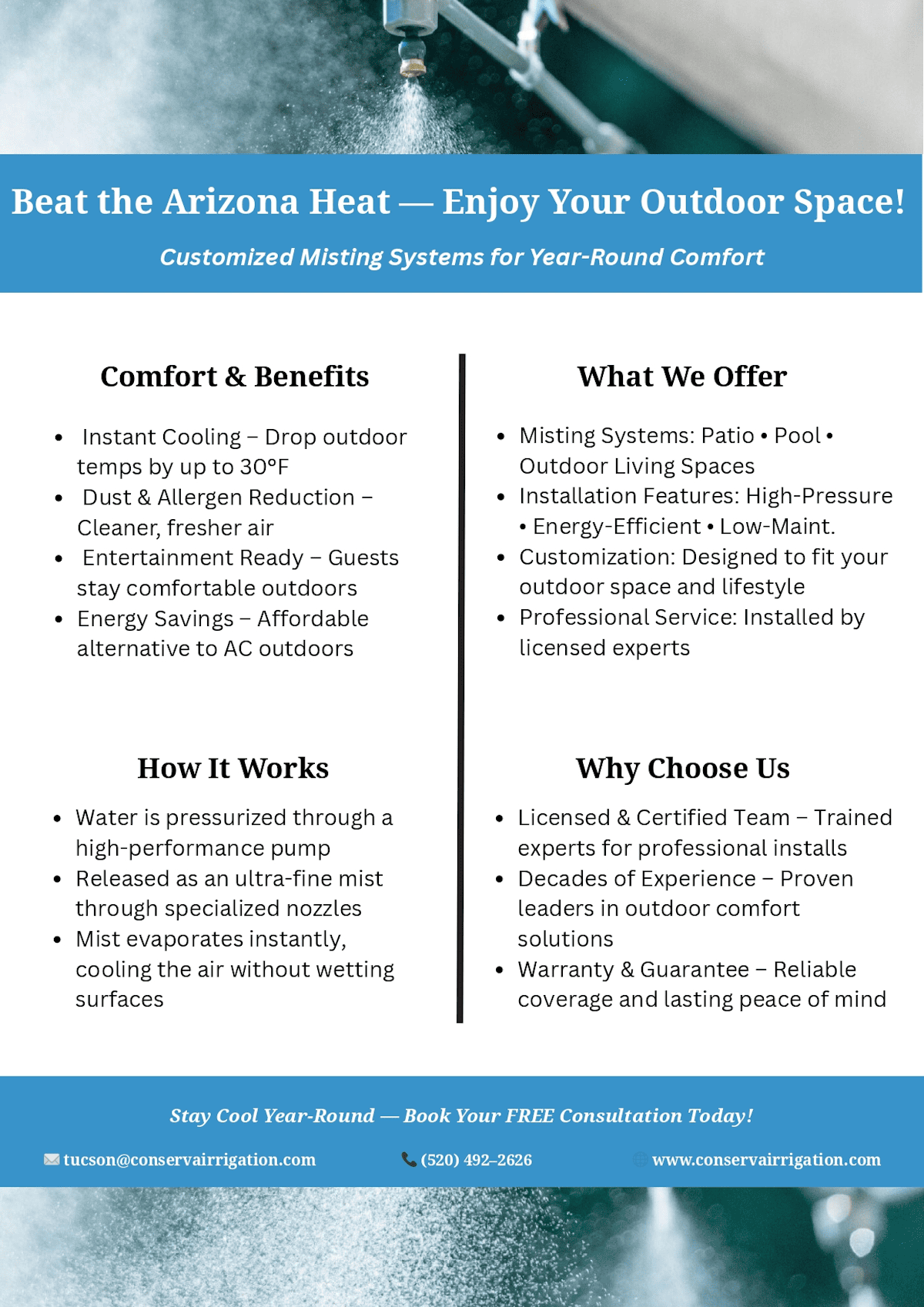 Conserva Customized Misting Systems for Year-Round Comfort