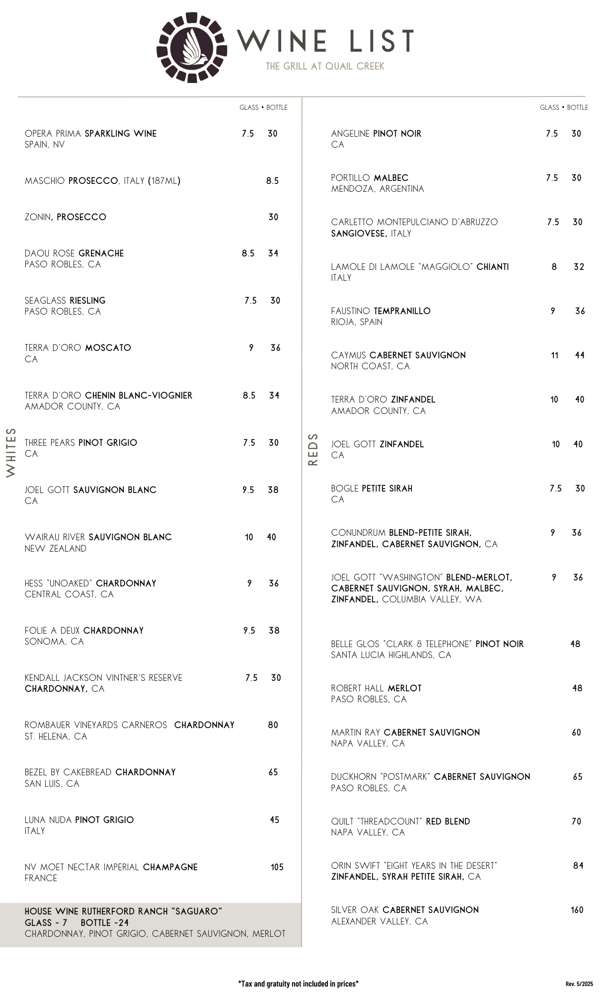 Wine Menu - May 2025