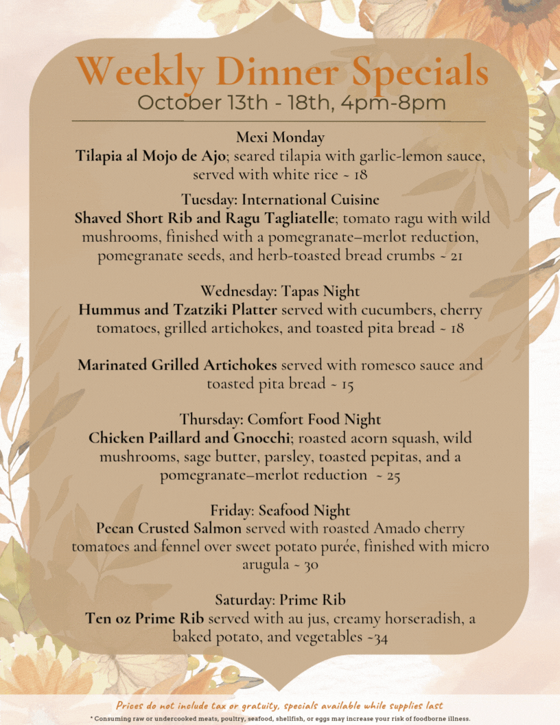 Dinner Specials - 10/13 to 10/18