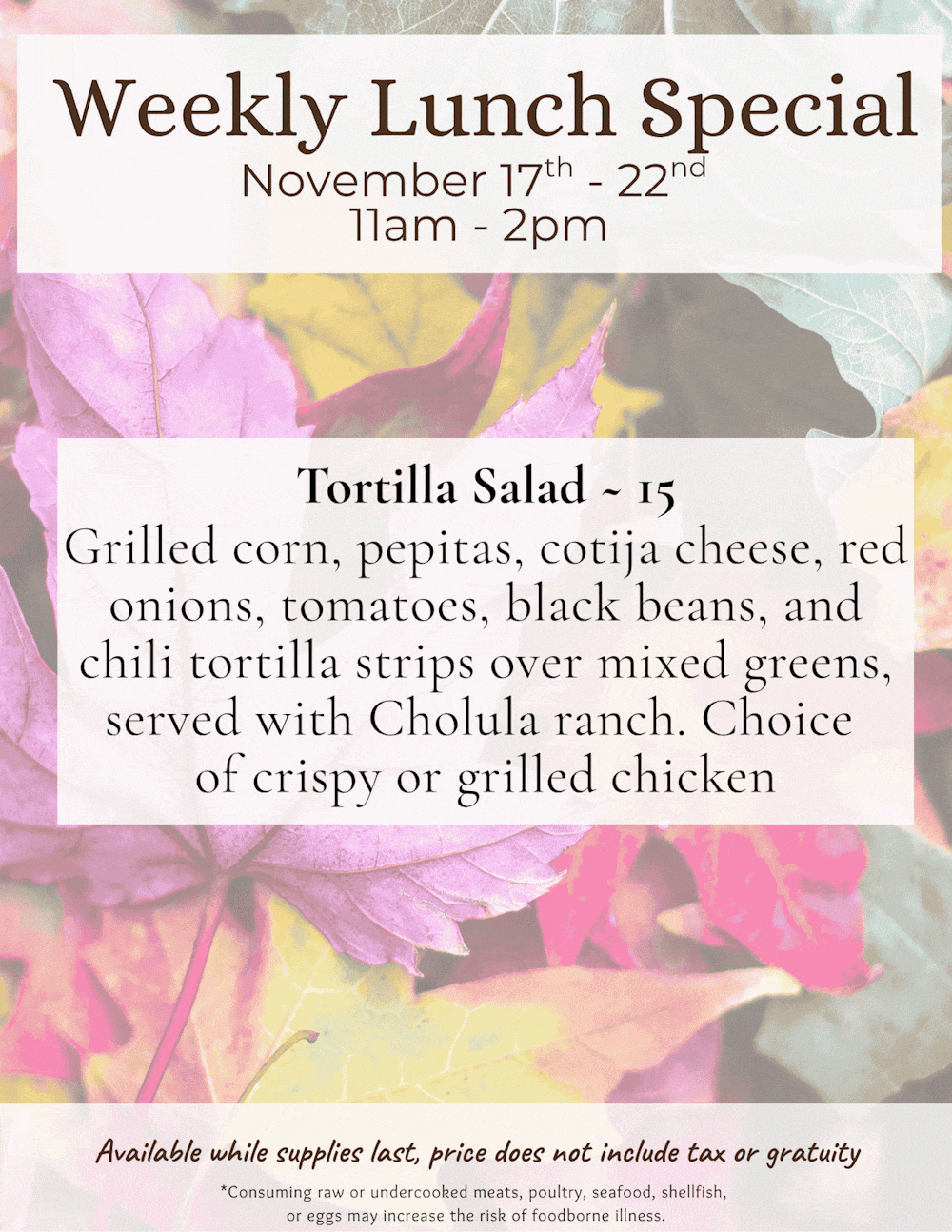 Lunch Specials - 11/17 to 11/22
