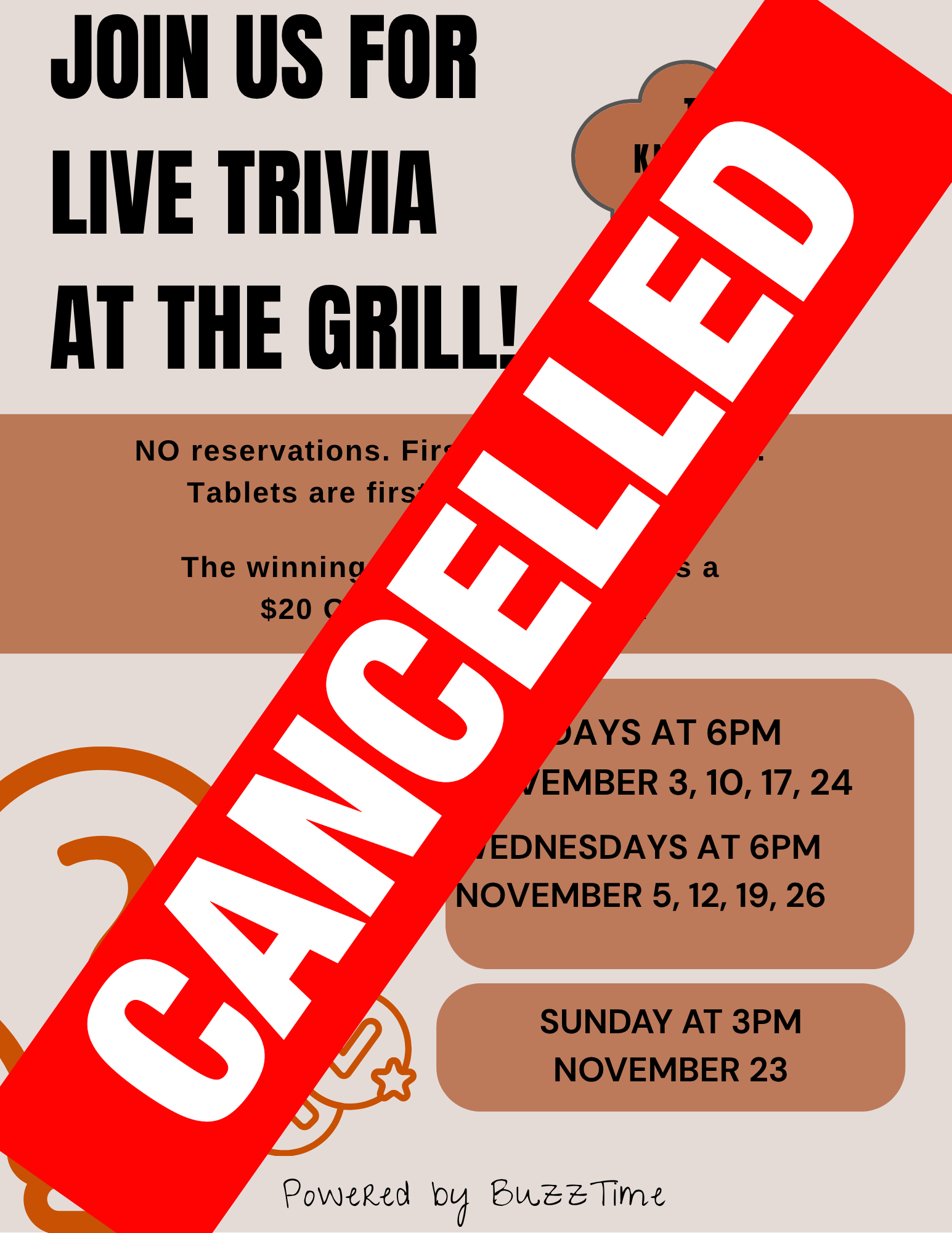 November Live Trivia - Canceled Until Further Notice